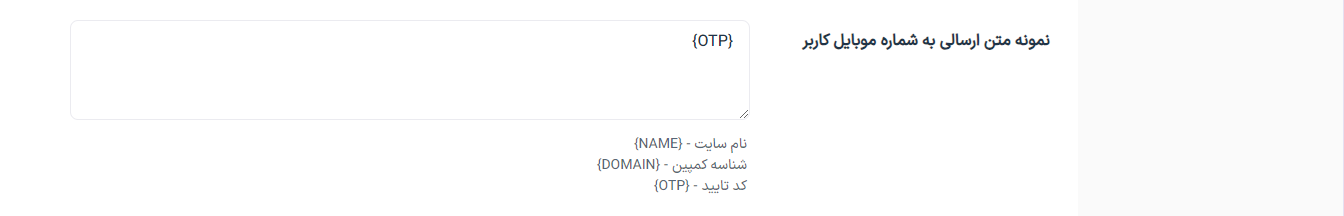 • فیلد نمونه متن ارسالی برای کاربران را با مقدار {OTP} پر کنید.